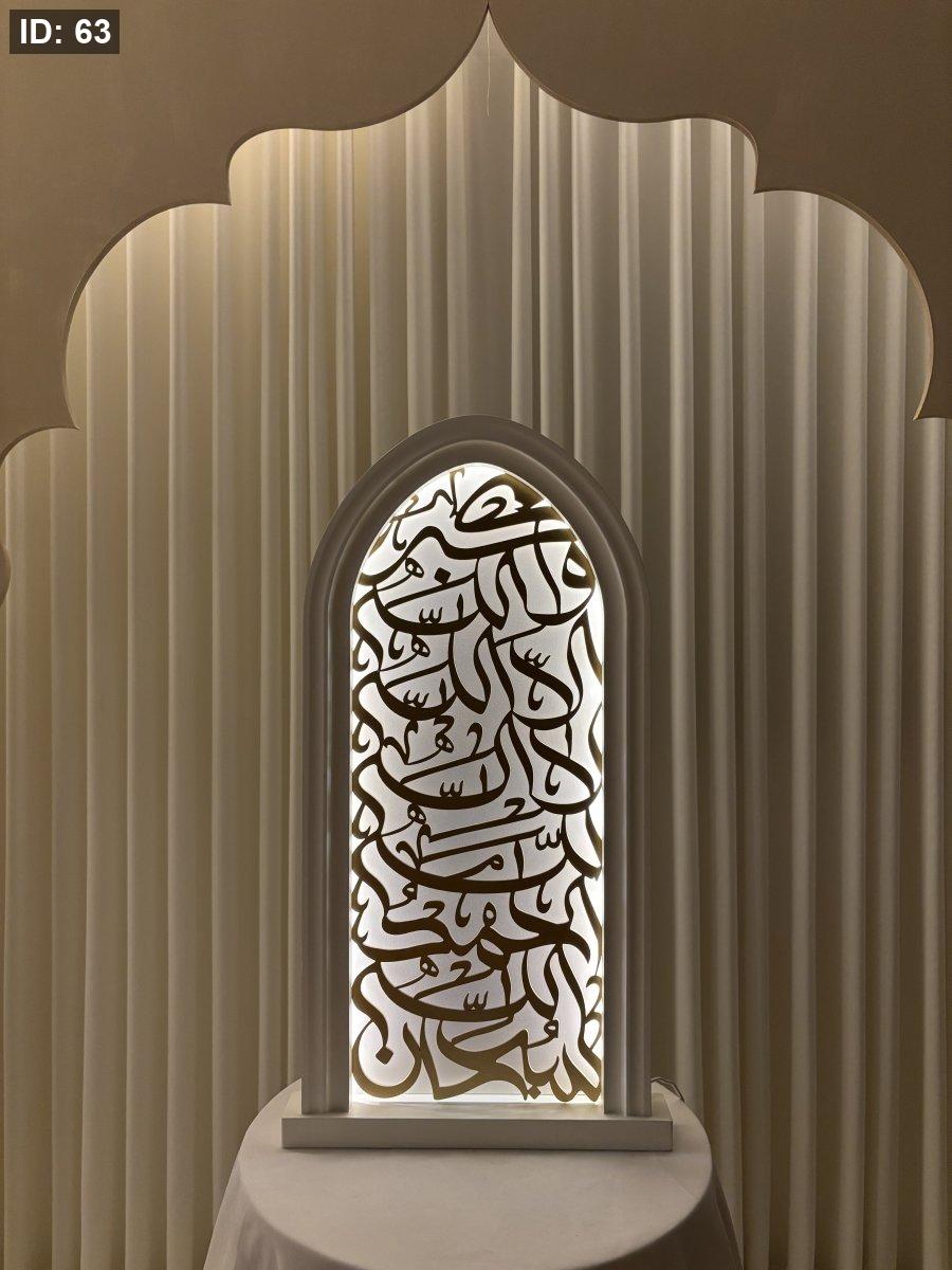 محراب بكلمات سبحان الله والحمد لله ولا إله إلا الله والله اكبر ارتفاع 60 سم من الخشب بجودة عاليه