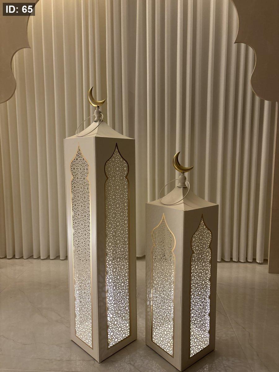 فوانيس قطعتين حجم كبير لون بيج وذهبي
